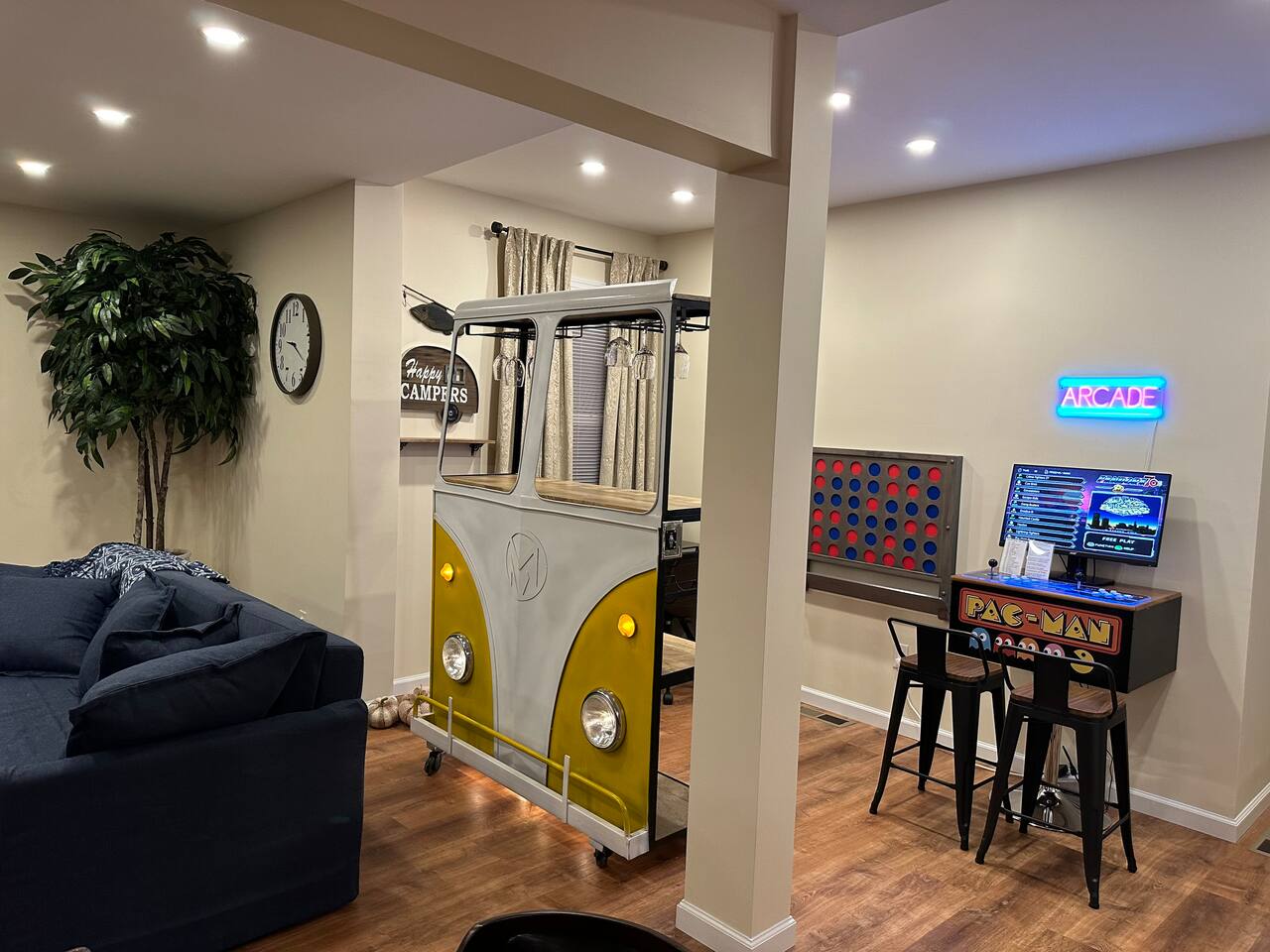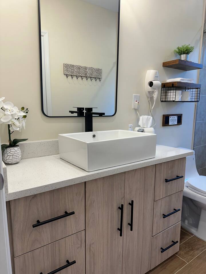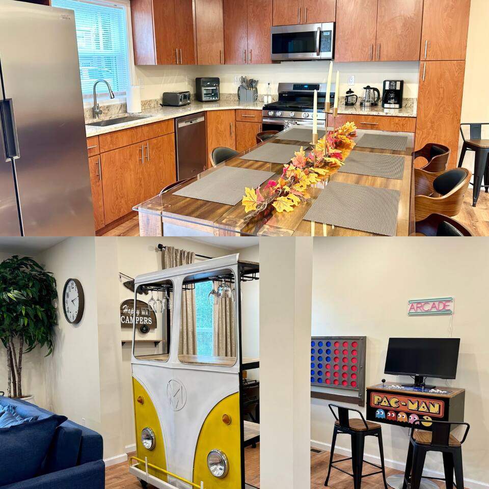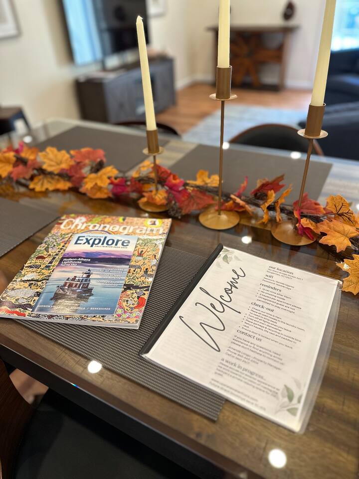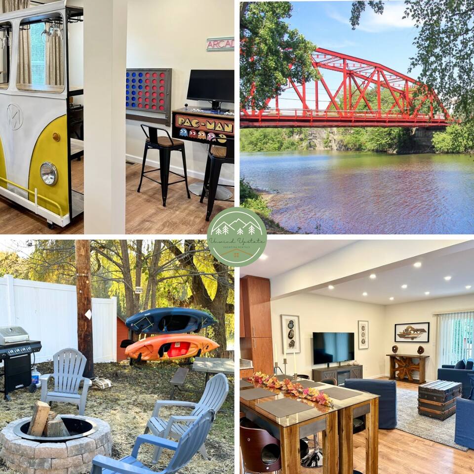 This fully renovated 2 bedroom waterfront property offers a range of amenities that cater to both relaxation and entertainment. Just a short 2-hour drive from New York City, this home is conveniently located within walking distance to everything happening in the trendy town of Saugerties. Here, you will discover a private backyard with a Hot Tub & Sauna, a dock to launch our kayaks (available for guest use), go fishing, swim or just relax and take in the beautiful lake views. Enjoy your own back deck with comfortable seating overlooking the Esopus Creek. Comfortable Accommodations - The master bedroom features a queen-size bed with quality linens, room darkening curtains, a closet, a five-drawer dresser, and a luggage rack. It also includes a smart TV with streaming apps, bedside charging ports, a ceiling fan with dimmable lights, and a small mirrored vanity. -Second bedroom also features a queen-size bed and an additional twin bed, comfortably accommodating three guests. It features a mounted TV with streaming apps, bedside charging stations, a ceiling fan with dimmable lights, room darkening curtains, and a dresser. -Full-size bathroom situated between the two bedrooms. This shower-only bathroom boasts excellent water pressure, and all-natural, paraben-free amenities (shampoo, conditioner, body wash) are provided. Guests will also find a hair dryer and plenty of large towels for their convenience. -Additionally, a stackable washer and dryer is available in the hallway laundry room at no extra charge. Laundry soap, Softener & Dryer sheets are included. Interior -All brand new furnishings throughout! -Open-concept living room includes a 52" smart TV, a comfy couch that opens into a full-size sleeping area -Two player arcade game packed with over 3,000 games -Check out the unique repurposed bar made from a VW bus! -Large selection of board games, puzzles, cards and coloring books -Dedicated workspace has high-speed internet and a water-facing window -Kitchen is equipped with brand-new stainless-steel appliances -Granite countertops and a fully stocked kitchen make it ideal for cooking enthusiasts -Dining table with seating for six Family Friendly -Crib and bedding -Padded Stand Alone Highchair -Children's plates, bowls, and cups -Toys and games Outdoor Features - Sauna - Hot Tub facing the Creek -Walking distance to the Saugerties beach - plenty of beach towels provided -Water-facing Balcony -Kayaks/vests/paddles provided for guests. Our dock is equipped with KayaArm which makes getting in and out of a kayak safe, easy, and dry—perfect for beginners, kids, or anyone who wants extra stability, launching your kayak has never been this effortless. -Outdoor Fire-Pit with Adirondack chairs -Barbecue Grill with picnic table -Private parking for 2 vehicles provided Proximity to Local Attractions -Steps away from the Saugerties Beach -Walking distance to the center of the town of Saugerties -Adjacent to Diamond Mills -1.5 miles to the Saugerties Lighthouse -2 miles to HITS Horse Show -7 miles to Opus 40 -10 miles to Woodstock (including Overlook Mountain) -13 miles to Kingston -14 miles to Rhinebeck -15 miles to Ashokan Reservoir Enjoy a pet-friendly getaway by requesting to bring one dog under 50 pounds, ensuring the whole family can join in on the fun. For any inquiries or assistance, feel free to reach out, as we are always available to help make your stay memorable. Indulge in all that the Hudson Valley and Catskills have to offer! Early Check-In / Late Check-Out Early check-in or late check-out may be available for an additional $75 fee, subject to availability. Please inquire in advance to confirm.
