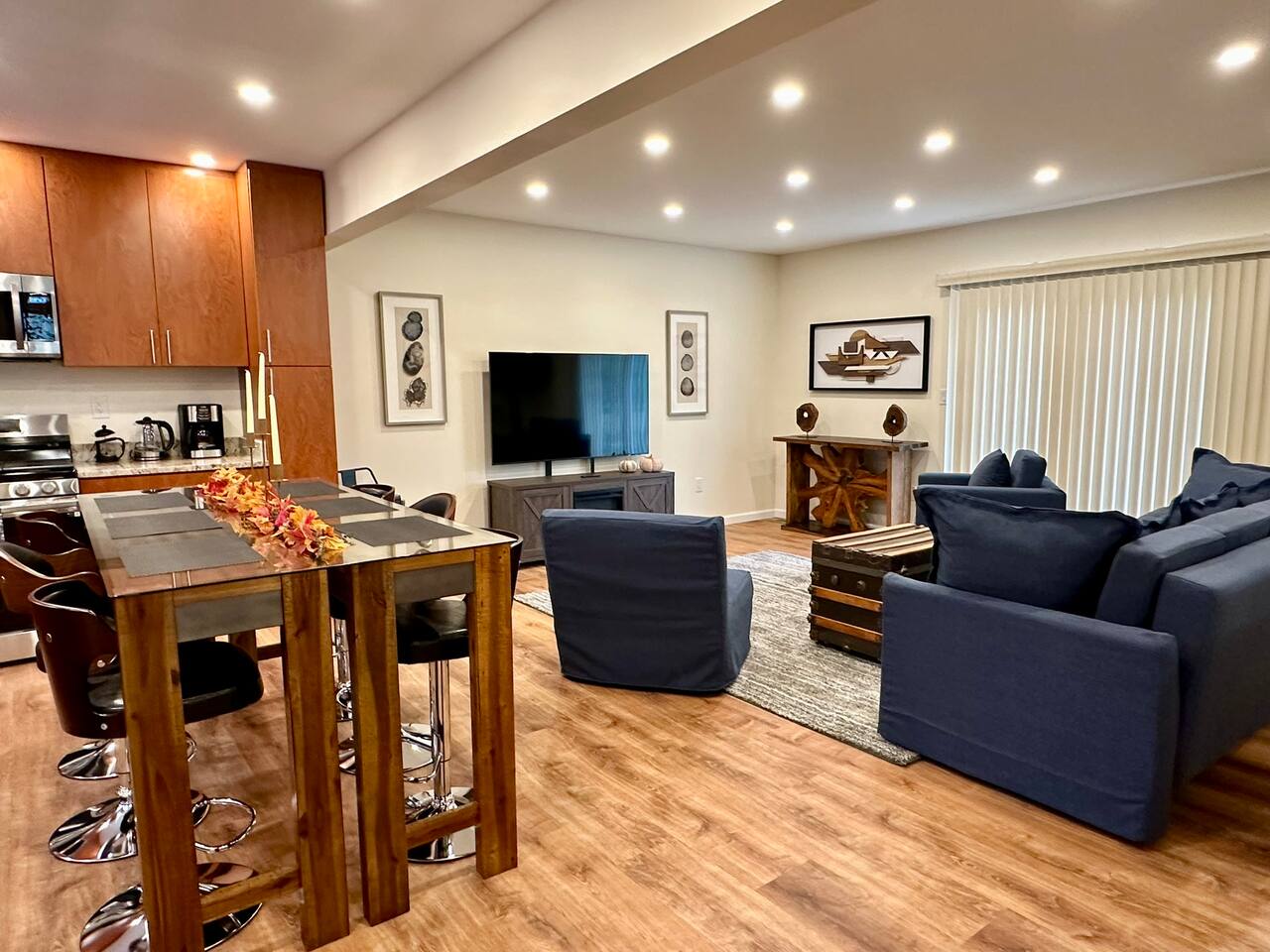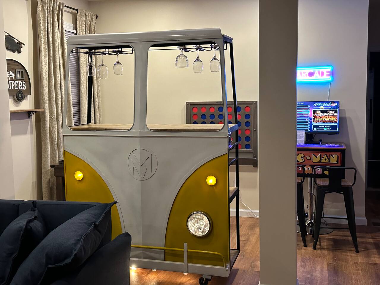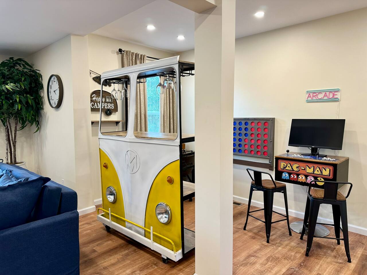 This fully renovated 2 bedroom waterfront property offers a range of amenities that cater to both relaxation and entertainment. Just a short 2-hour drive from New York City, this home is conveniently located within walking distance to everything happening in the trendy town of Saugerties. Here, you will discover a private backyard with a Hot Tub & Sauna, a dock to launch our kayaks (available for guest use), go fishing, swim or just relax and take in the beautiful lake views. Enjoy your own back deck with comfortable seating overlooking the Esopus Creek. Comfortable Accommodations - The master bedroom features a queen-size bed with quality linens, room darkening curtains, a closet, a five-drawer dresser, and a luggage rack. It also includes a smart TV with streaming apps, bedside charging ports, a ceiling fan with dimmable lights, and a small mirrored vanity. -Second bedroom also features a queen-size bed and an additional twin bed, comfortably accommodating three guests. It features a mounted TV with streaming apps, bedside charging stations, a ceiling fan with dimmable lights, room darkening curtains, and a dresser. -Full-size bathroom situated between the two bedrooms. This shower-only bathroom boasts excellent water pressure, and all-natural, paraben-free amenities (shampoo, conditioner, body wash) are provided. Guests will also find a hair dryer and plenty of large towels for their convenience. -Additionally, a stackable washer and dryer is available in the hallway laundry room at no extra charge. Laundry soap, Softener & Dryer sheets are included. Interior -All brand new furnishings throughout! -Open-concept living room includes a 52" smart TV, a comfy couch that opens into a full-size sleeping area -Two player arcade game packed with over 3,000 games -Check out the unique repurposed bar made from a VW bus! -Large selection of board games, puzzles, cards and coloring books -Dedicated workspace has high-speed internet and a water-facing window -Kitchen is equipped with brand-new stainless-steel appliances -Granite countertops and a fully stocked kitchen make it ideal for cooking enthusiasts -Dining table with seating for six Family Friendly -Crib and bedding -Padded Stand Alone Highchair -Children's plates, bowls, and cups -Toys and games Outdoor Features - Sauna - Hot Tub facing the Creek -Walking distance to the Saugerties beach - plenty of beach towels provided -Water-facing Balcony -Kayaks/vests/paddles provided for guests. Our dock is equipped with KayaArm which makes getting in and out of a kayak safe, easy, and dry—perfect for beginners, kids, or anyone who wants extra stability, launching your kayak has never been this effortless. -Outdoor Fire-Pit with Adirondack chairs -Barbecue Grill with picnic table -Private parking for 2 vehicles provided Proximity to Local Attractions -Steps away from the Saugerties Beach -Walking distance to the center of the town of Saugerties -Adjacent to Diamond Mills -1.5 miles to the Saugerties Lighthouse -2 miles to HITS Horse Show -7 miles to Opus 40 -10 miles to Woodstock (including Overlook Mountain) -13 miles to Kingston -14 miles to Rhinebeck -15 miles to Ashokan Reservoir Enjoy a pet-friendly getaway by requesting to bring one dog under 50 pounds, ensuring the whole family can join in on the fun. For any inquiries or assistance, feel free to reach out, as we are always available to help make your stay memorable. Indulge in all that the Hudson Valley and Catskills have to offer! Early Check-In / Late Check-Out Early check-in or late check-out may be available for an additional $75 fee, subject to availability. Please inquire in advance to confirm.