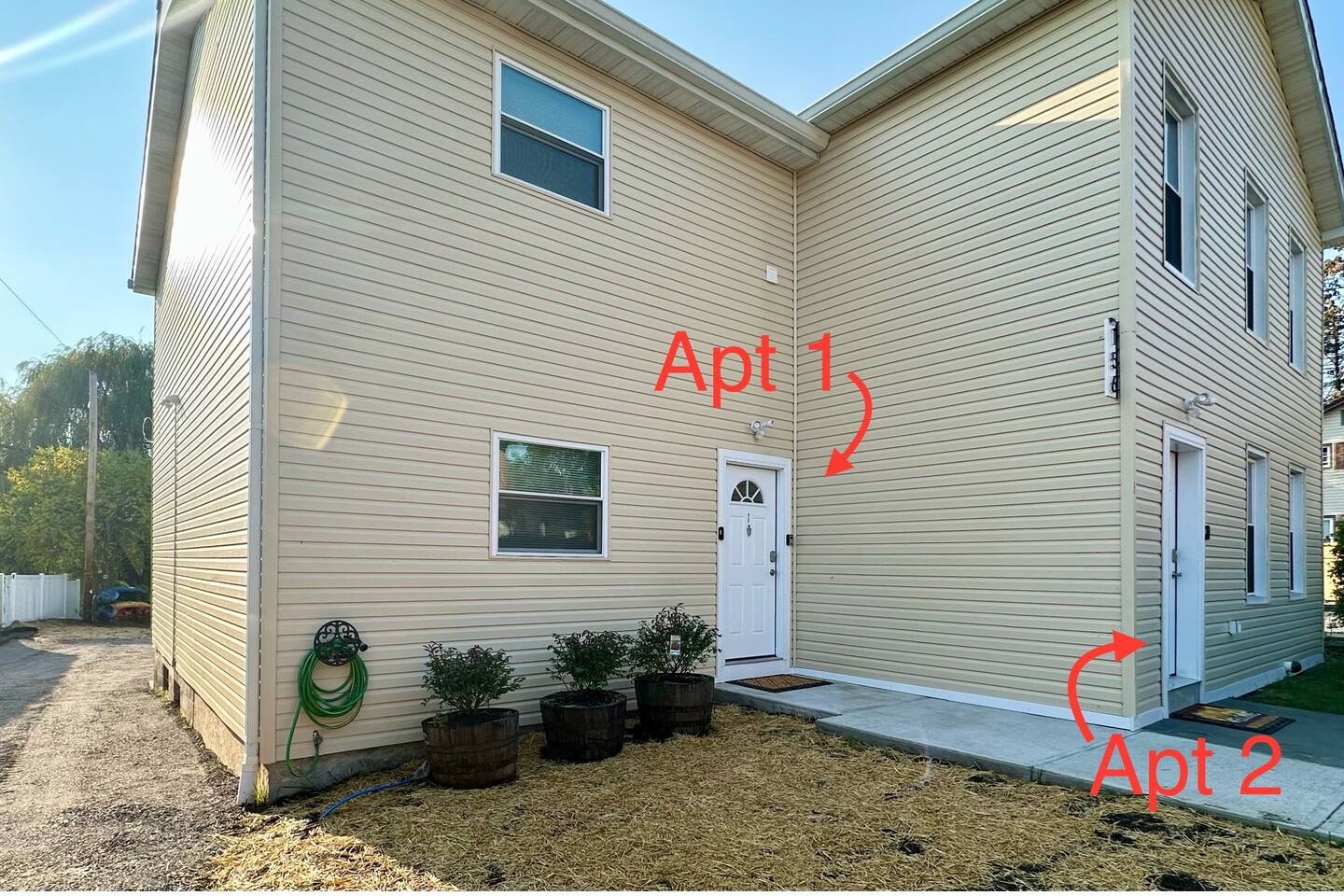 This space is one of two apartments within a two floor building. This 2 bedroom apartment occupies the entire 1st floor and has its own private entrance. There are no shared spaces inside.