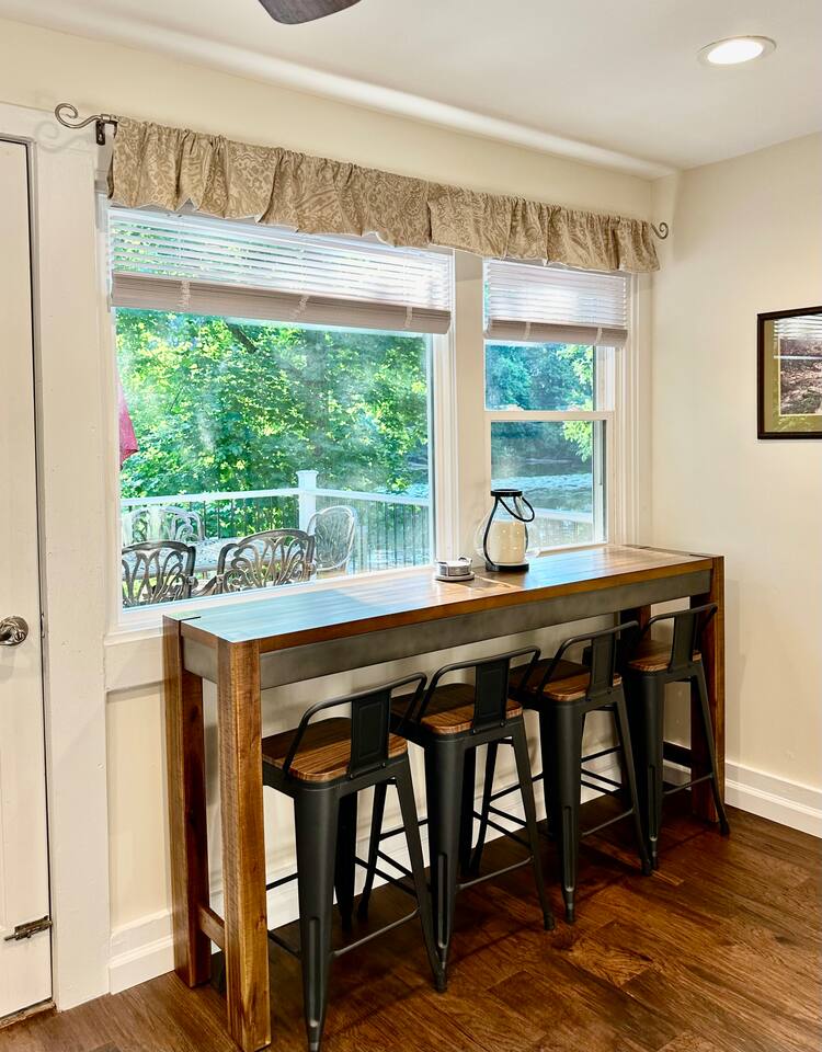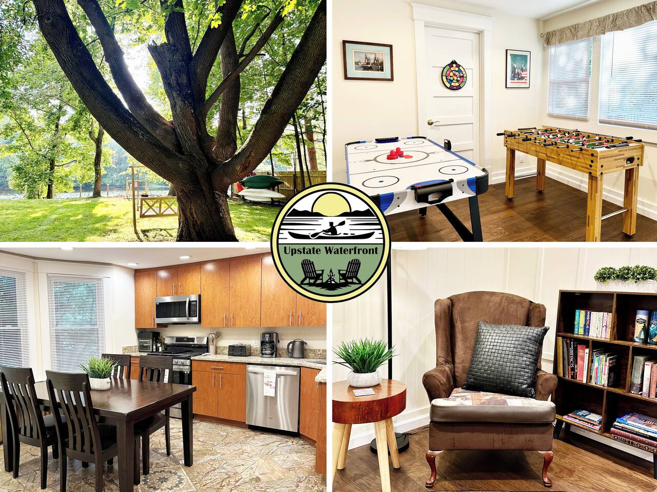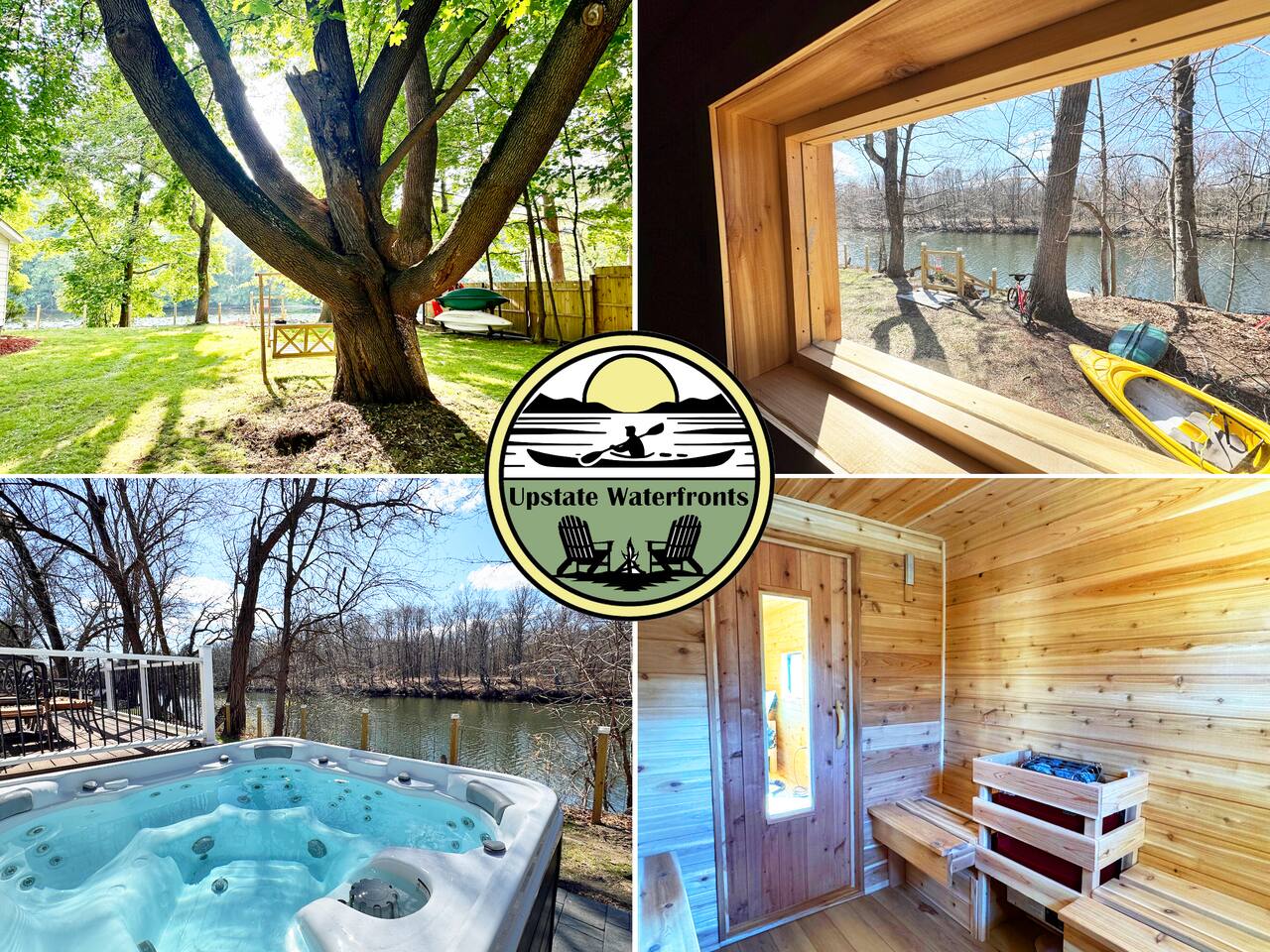 Step into a beautifully renovated creekfront home designed for relaxation, adventure, and seasonal magic. With all-new furnishings, a spacious open-concept living area, and a fully equipped kitchen with stainless steel appliances and granite countertops, this retreat combines modern comfort with the serenity of nature. Curl up by the LED fireplace or enjoy a movie night on the 75” Smart TV, surrounded by scenic fall foliage or winter snow. Creekside Sauna Retreat Our unique sauna RV offers a cozy, private experience tucked along the Esopus Creek. Perfect after a crisp fall hike or a snowy paddle adventure, it features: - Custom-built sauna to soothe your senses - Full-size futon bed for restful post-sauna naps - Flat-screen TV for relaxed entertainment - Dining table with benches for snacks, card games, or tea by the creek - Serene creek views for a peaceful escape Hot Tub & Private Creek Access Unwind in the outdoor hot tub while listening to the gentle flow of the creek, surrounded by autumn colors or winter white. Step onto your private dock for fishing, kayaking, or stargazing. Complimentary kayaks, paddleboard, paddles, and life vests are included for endless seasonal adventure. Our KayaArm kayak launch makes water access effortless and safe, even in cooler months, allowing everyone — from beginners to kids — to enjoy the creek with confidence. Scenic Waterfront Deck & Outdoor Fun Sip morning coffee or enjoy sunset cocktails on the deck with breathtaking seasonal views. Rain or shine, fun awaits: - Game room with foosball, air hockey, real arcade (50 plus classic games), and board games - Outdoor grill and picnic table - Firepit with Adirondack chairs - Outdoor games: ping-pong, cornhole, life-size Connect 4 Bedrooms & Amenities - Bedroom 1: Queen bed, Smart TV, dresser, closet, blackout curtains - Bedroom 2: Queen bed, Smart TV, dresser, closet, blackout curtains - Bedroom 3: Twin-over-full bunk bed (sleeps 3) - Additional sleeping: Full-size futon in living room - 2 full bathrooms with walk-in showers and natural toiletries - Laundry room with washer/dryer (detergent, softener & dryer sheets included) - Family-friendly: crib, high-chair, kids’ plates and cups - Proximity to Local Attractions - Kingston, Saugerties, Woodstock – all within ~12 miles - Diamond Mills, Saugerties Lighthouse, HITS Horse Show, Opus 40 - Rhinebeck, Overlook Mountain, Ashokan Reservoir Pet-friendly stays welcome dogs under 50 pounds. Whether you’re chasing fall foliage, enjoying winter snow, or simply relaxing by the creek, this Upstate Waterfront retreat is your seasonal sanctuary for adventure, comfort, and memory-making in the Hudson Valley.