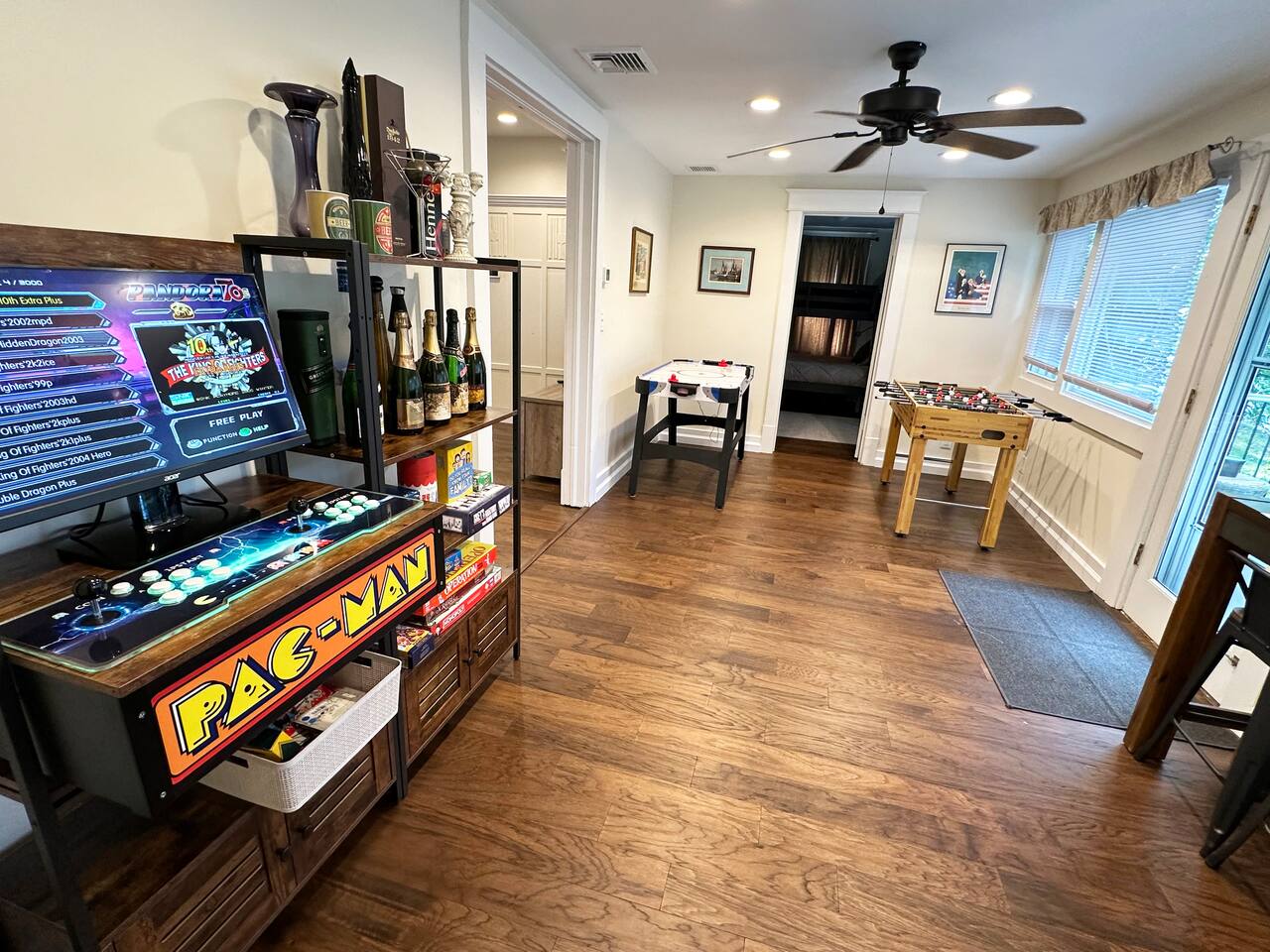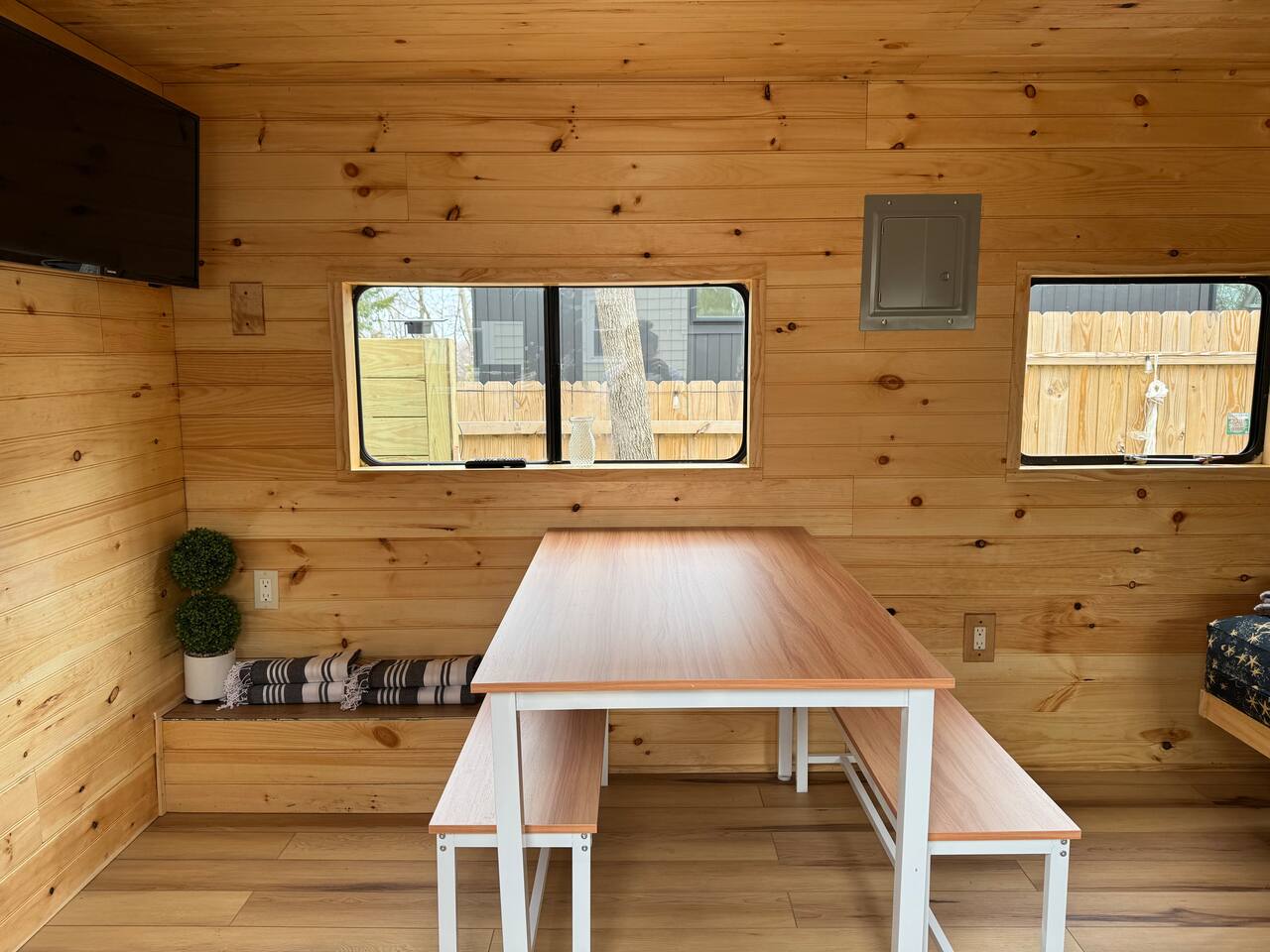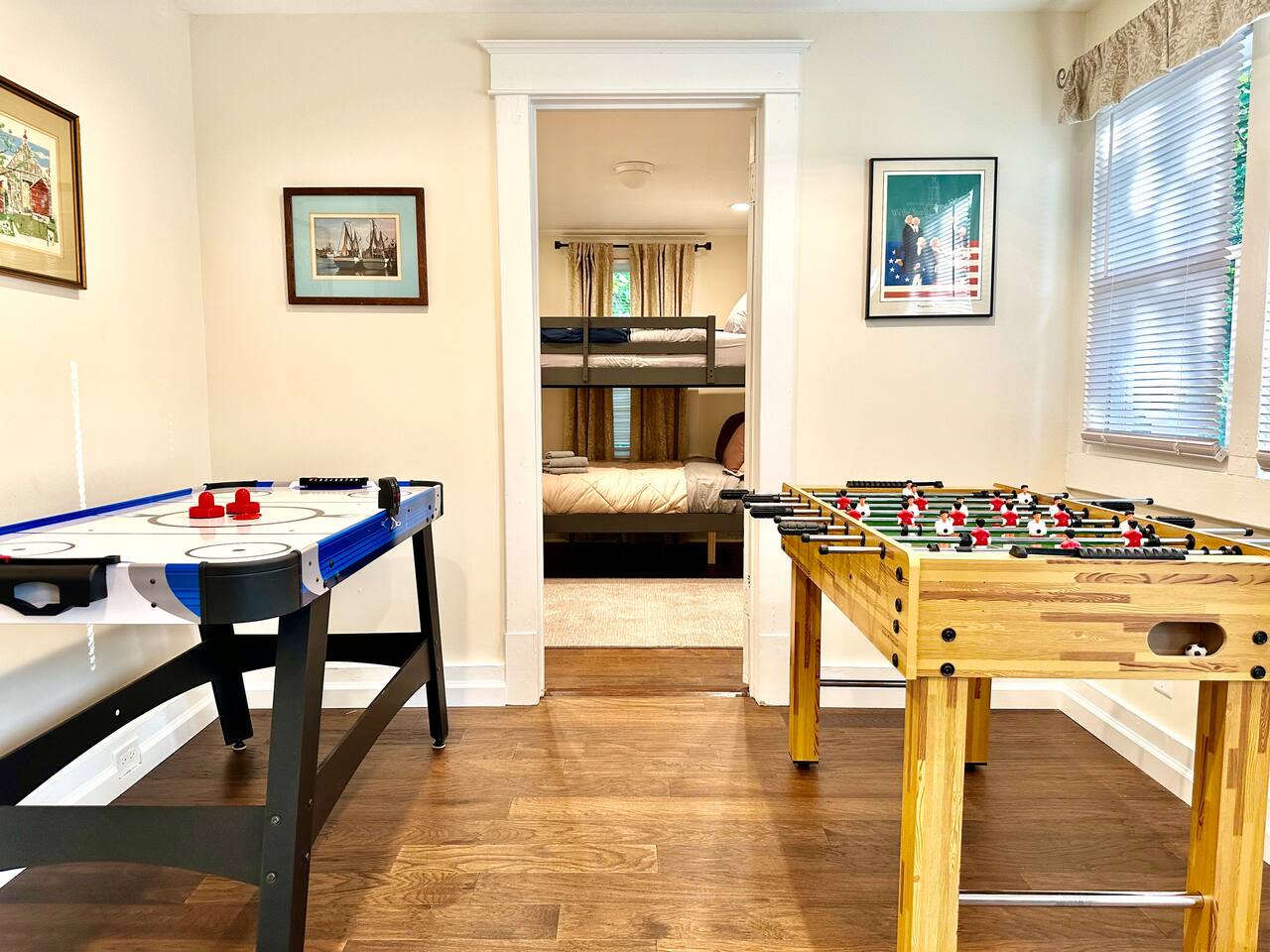 Step into a beautifully renovated creekfront home designed for relaxation, adventure, and seasonal magic. With all-new furnishings, a spacious open-concept living area, and a fully equipped kitchen with stainless steel appliances and granite countertops, this retreat combines modern comfort with the serenity of nature. Curl up by the LED fireplace or enjoy a movie night on the 75” Smart TV, surrounded by scenic fall foliage or winter snow. Creekside Sauna Retreat Our unique sauna RV offers a cozy, private experience tucked along the Esopus Creek. Perfect after a crisp fall hike or a snowy paddle adventure, it features: - Custom-built sauna to soothe your senses - Full-size futon bed for restful post-sauna naps - Flat-screen TV for relaxed entertainment - Dining table with benches for snacks, card games, or tea by the creek - Serene creek views for a peaceful escape Hot Tub & Private Creek Access Unwind in the outdoor hot tub while listening to the gentle flow of the creek, surrounded by autumn colors or winter white. Step onto your private dock for fishing, kayaking, or stargazing. Complimentary kayaks, paddleboard, paddles, and life vests are included for endless seasonal adventure. Our KayaArm kayak launch makes water access effortless and safe, even in cooler months, allowing everyone — from beginners to kids — to enjoy the creek with confidence. Scenic Waterfront Deck & Outdoor Fun Sip morning coffee or enjoy sunset cocktails on the deck with breathtaking seasonal views. Rain or shine, fun awaits: - Game room with foosball, air hockey, real arcade (50 plus classic games), and board games - Outdoor grill and picnic table - Firepit with Adirondack chairs - Outdoor games: ping-pong, cornhole, life-size Connect 4 Bedrooms & Amenities - Bedroom 1: Queen bed, Smart TV, dresser, closet, blackout curtains - Bedroom 2: Queen bed, Smart TV, dresser, closet, blackout curtains - Bedroom 3: Twin-over-full bunk bed (sleeps 3) - Additional sleeping: Full-size futon in living room - 2 full bathrooms with walk-in showers and natural toiletries - Laundry room with washer/dryer (detergent, softener & dryer sheets included) - Family-friendly: crib, high-chair, kids’ plates and cups - Proximity to Local Attractions - Kingston, Saugerties, Woodstock – all within ~12 miles - Diamond Mills, Saugerties Lighthouse, HITS Horse Show, Opus 40 - Rhinebeck, Overlook Mountain, Ashokan Reservoir Pet-friendly stays welcome dogs under 50 pounds. Whether you’re chasing fall foliage, enjoying winter snow, or simply relaxing by the creek, this Upstate Waterfront retreat is your seasonal sanctuary for adventure, comfort, and memory-making in the Hudson Valley.