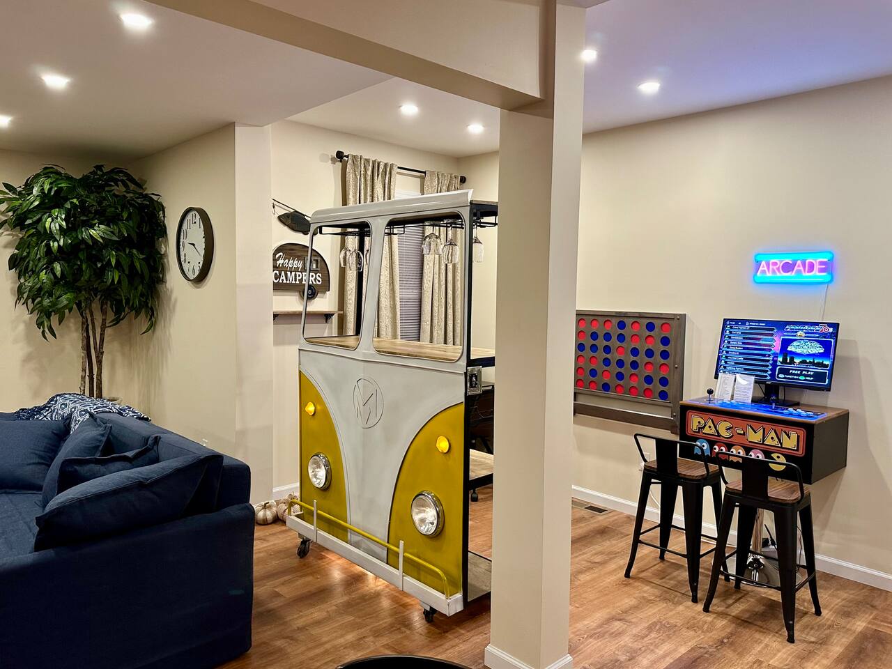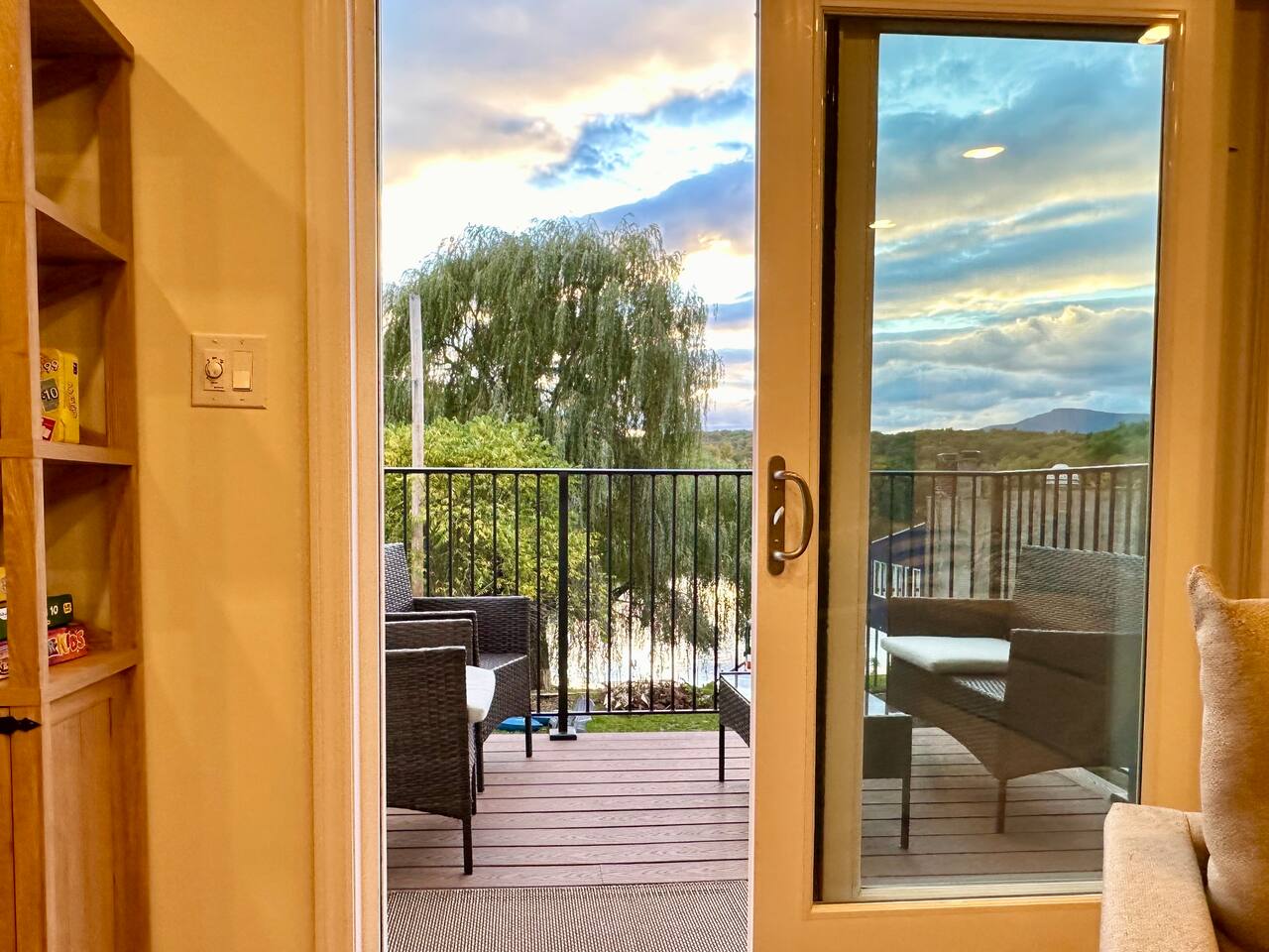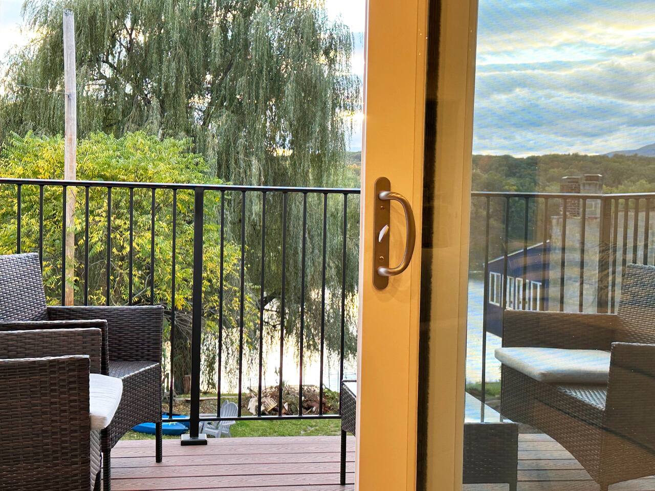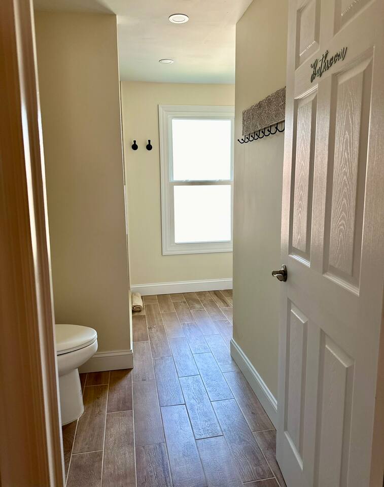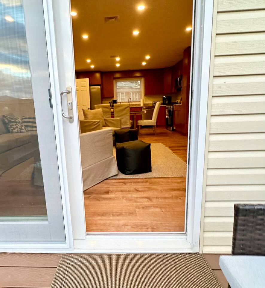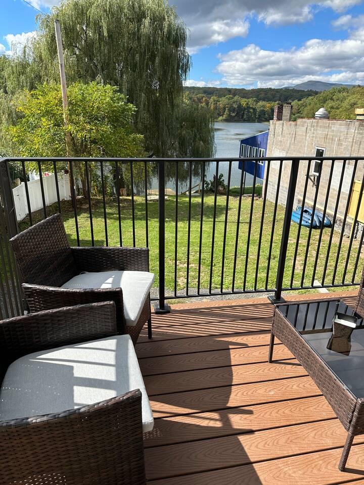 Spacious 5-Bedroom Lakefront Retreat in the Heart of Saugerties Welcome to your perfect getaway! This expansive two-story home comfortably sleeps up to 14 guests and is nestled just a short walk from all the charm, dining, and entertainment the vibrant Village of Saugerties has to offer. Designed with flexibility in mind, the home features two fully equipped apartment spaces rented together as one unit—perfect for family reunions, friend gatherings, or corporate retreats. Prefer a relaxing day in? You’ll find no shortage of ways to unwind. With stunning lake views of the Esopus Creek and a wide range of luxurious amenities, this home offers the perfect blend of tranquility and convenience. Comfortable Accommodations (Layout) *First Floor* - Master bedroom features a queen-size bed with quality linens, room darkening curtains, a closet, a five-drawer dresser, and a luggage rack. It also includes a smart TV with streaming apps, bedside charging ports, a ceiling fan with dimmable lights, and a small mirrored vanity -Second bedroom also features a queen-size bed and an additional twin bed, comfortably accommodating three guests. It features a mounted TV with streaming apps, bedside charging stations, a ceiling fan with dimmable lights, room darkening curtains, and a dresser -Full-size bathroom situated between the two bedrooms. This shower-only bathroom boasts excellent water pressure, and all-natural, paraben-free amenities (shampoo, conditioner, body wash) are provided. Guests will also find a hair dryer and plenty of large towels for their convenience -Laundry Room with a brand new washer/dryer set. Laundry supplies provided at no cost -Open-concept living room includes a 60" smart TV, a comfy couch that opens into a full size sleeping area -2 player arcade game packed with over 2,500 games to battle friends or play solo -Unique repurposed bar made from a VW bus! -Large selection of board games, puzzles, cards and coloring books -Dedicated workspace has high-speed internet and a water-facing window -Kitchen is equipped with brand new stainless steel appliances -Marble countertops and a fully stocked kitchen make it ideal for cooking enthusiasts -Bar height dining table with seating for six + additional seating *Second Floor* -The master bedroom features a queen-size bed with quality linens, room darkening curtains, a closet, a five-drawer dresser, and a luggage rack. It also includes a smart TV with streaming apps, bedside charging ports, a ceiling fan with dimmable lights, and a desk for a fully private workspace -Second bedroom also features a queen size bed and boasts all of the same amenities as the master, minus the desk -Third bedroom features a twin over twin bunkbed and a futon that opens into a full-size sleep space. The TV has been replaced with an arcade system packed with over 2,500 games for 1-2 players! -Full-size bathroom situated between the two bedrooms. This shower-only bathroom boasts excellent water pressure, and all-natural, paraben-free amenities (shampoo, conditioner, body wash) are provided. Guests will also find a hair dryer and plenty of large towels for their convenience -Stackable washer and dryer is available in the hallway laundry room at no extra charge. Laundry soap is included -Open concept living room includes a 75" smart TV preloaded with streaming apps, a comfortable couch and two swivel chairs -Large selection of board games, puzzles, cards and coloring books for all ages -Kitchen is equipped with brand-new stainless-steel appliances -Granite countertops and a fully stocked kitchen make it ideal for cooking enthusiasts -Dining table with seating for six (additional folding chairs available) Family Friendly -Crib and bedding -Highchair -Children's plates, bowls, and cups -Toys and games -Installed gate blocking the stairs Outdoor Features -Private Hot Tub – Soak in serenity with stunning views of Esopus Creek -Sauna – A tranquil space to relax and unwind -Beach Access – Just a short walk to Saugerties beach; plenty of beach towels provided -Balconies – Two water-facing balconies perfect for morning coffee or evening sunsets -Kayaks Included – 4 kayaks with life vests and paddles available for guest use. -Kayak with Confidence – Kaya-Arm Our property features a Kaya-Arm , making it easier and safer than ever to get in and out of a kayak right from the dock. This innovative stabilizer is perfect for all ages and skill levels—no more wobbly starts or tricky landings! Whether you're an experienced paddler or trying kayaking for the first time, you'll appreciate the added comfort and security this unique feature provides -Private Dock – Ideal for fishing, swimming, or launching kayaks -Outdoor Fire Pit – Gather around the fire with Adirondack chairs provided -Grilling Area – 2 barbecue grills and 2 picnic tables for outdoor dining -Private Parking – Free parking for up to 4 vehicles Proximity to Local Attractions -Steps away from the Saugerties Beach -Walking distance to the center of the town of Saugerties -Adjacent to Diamond Mills -1.5 miles to the Saugerties Lighthouse -2 miles to HITS Horse Show -7 miles to Opus 40 -10 miles to Woodstock (including Overlook Mountain) -13 miles to Kingston -14 miles to Rhinebeck -15 miles to Ashokan Reservoir Enjoy a pet-friendly getaway by requesting to bring one dog under 50 pounds, ensuring the whole family can join in on the fun. For any inquiries or assistance, feel free to reach out, as we are always available to help make your stay memorable. Indulge in all that the Hudson Valley and Catskills have to offer! Early Check-In / Late Check-Out Early check-in or late check-out may be available for an additional $75 fee, subject to availability. Please inquire in advance to confirm.