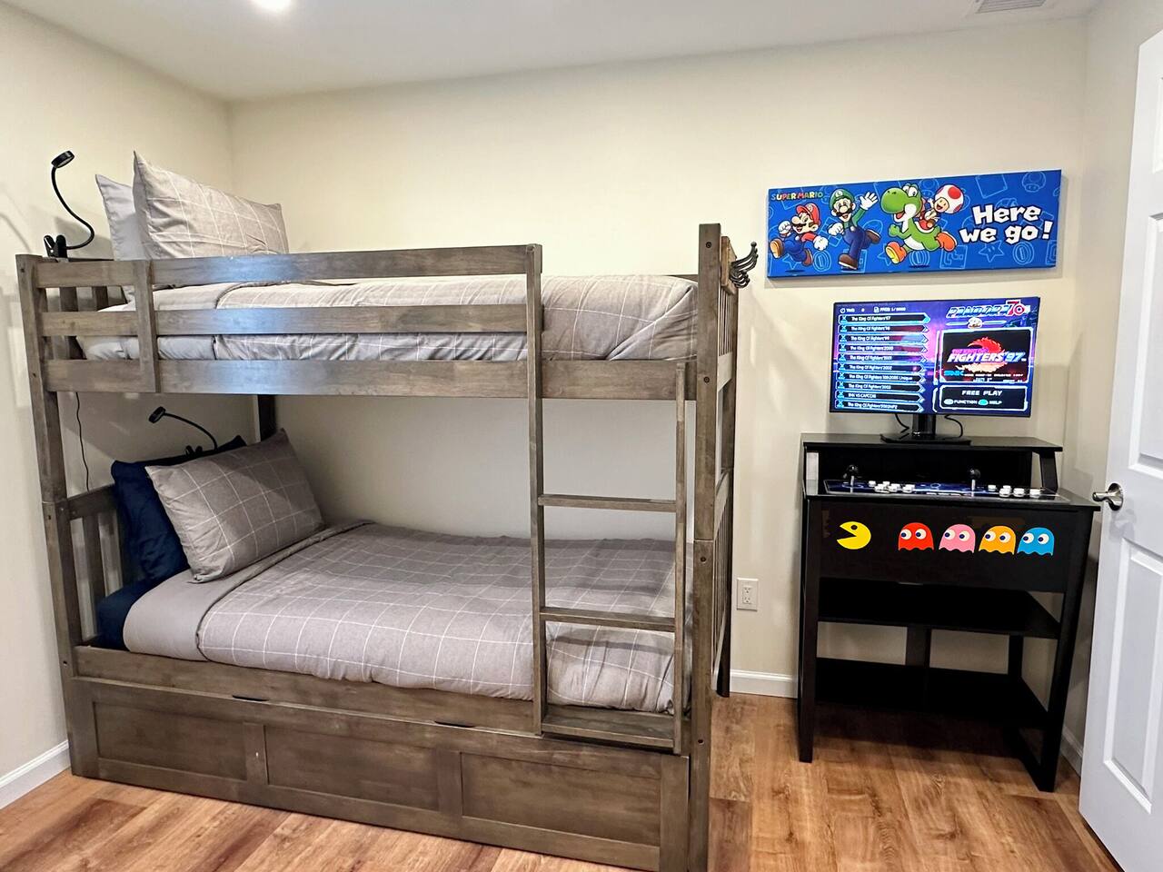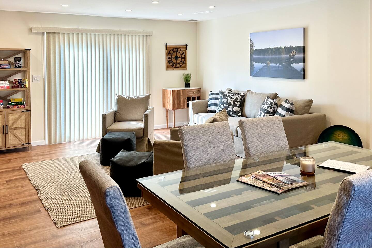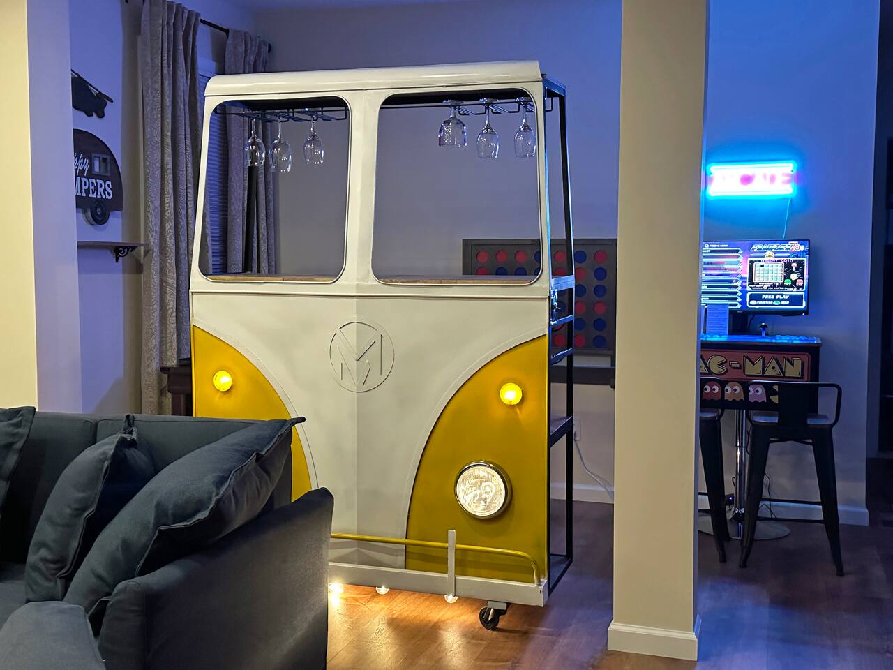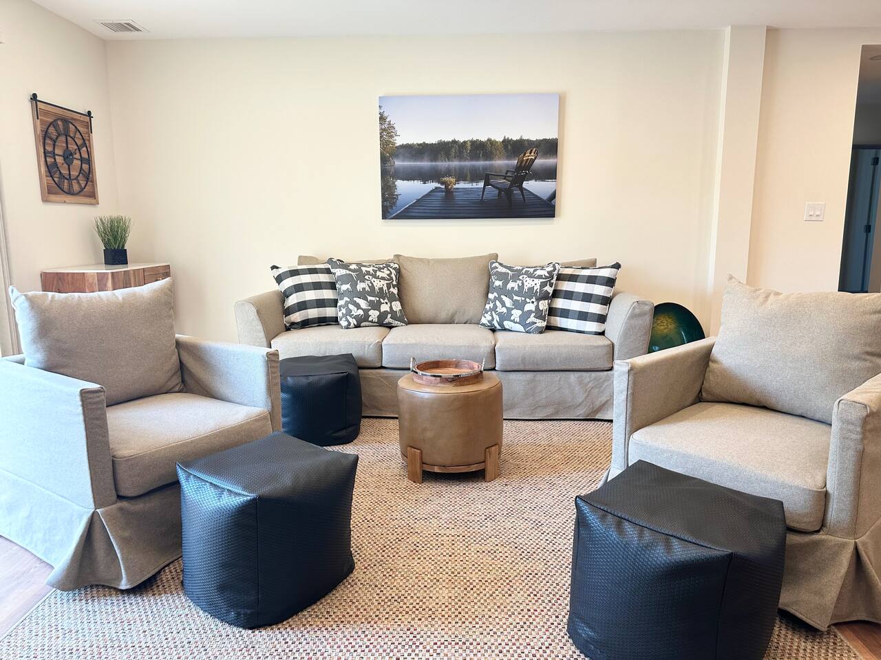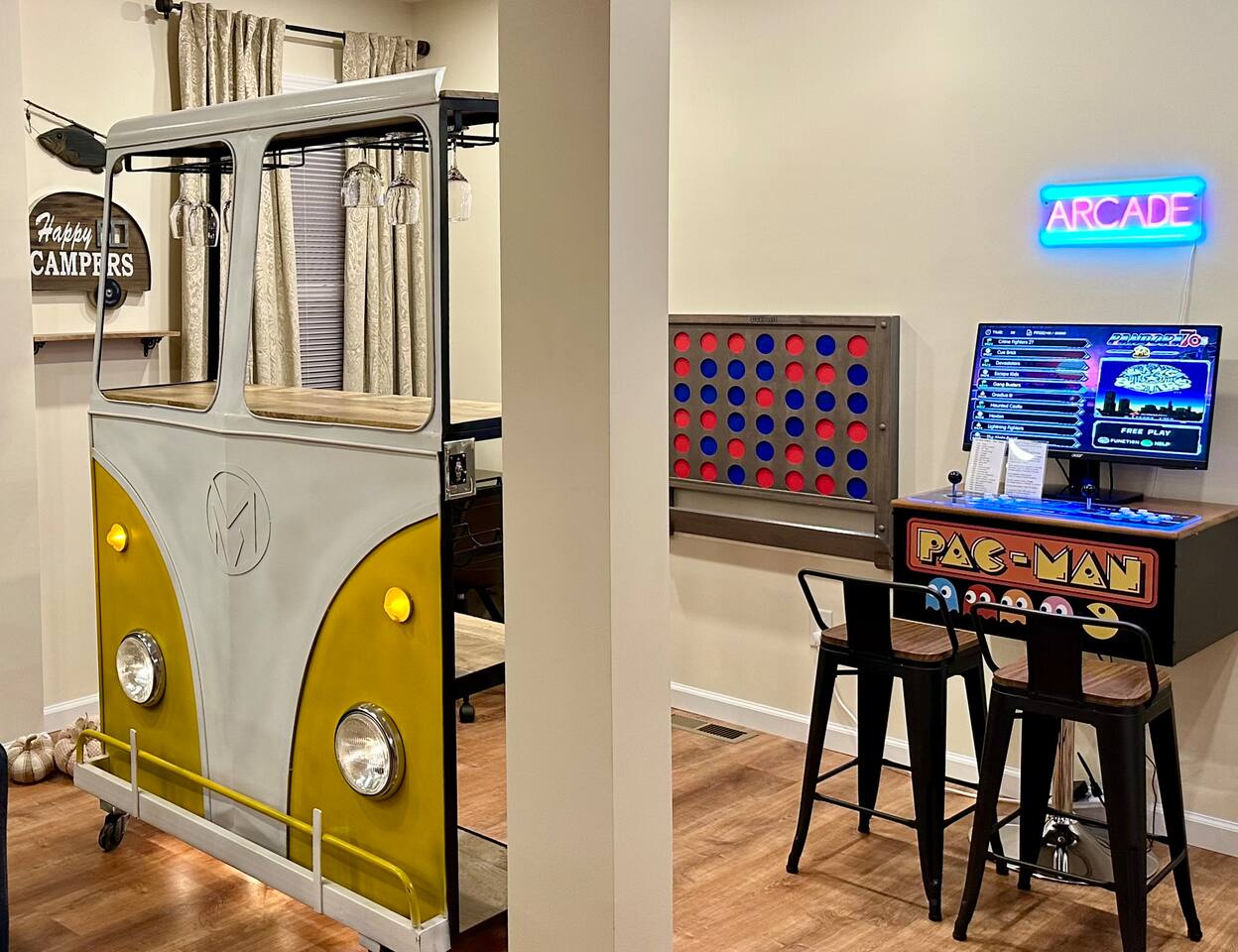 Spacious 5-Bedroom Lakefront Retreat in the Heart of Saugerties Welcome to your perfect getaway! This expansive two-story home comfortably sleeps up to 14 guests and is nestled just a short walk from all the charm, dining, and entertainment the vibrant Village of Saugerties has to offer. Designed with flexibility in mind, the home features two fully equipped apartment spaces rented together as one unit—perfect for family reunions, friend gatherings, or corporate retreats. Prefer a relaxing day in? You’ll find no shortage of ways to unwind. With stunning lake views of the Esopus Creek and a wide range of luxurious amenities, this home offers the perfect blend of tranquility and convenience. Comfortable Accommodations (Layout) *First Floor* - Master bedroom features a queen-size bed with quality linens, room darkening curtains, a closet, a five-drawer dresser, and a luggage rack. It also includes a smart TV with streaming apps, bedside charging ports, a ceiling fan with dimmable lights, and a small mirrored vanity -Second bedroom also features a queen-size bed and an additional twin bed, comfortably accommodating three guests. It features a mounted TV with streaming apps, bedside charging stations, a ceiling fan with dimmable lights, room darkening curtains, and a dresser -Full-size bathroom situated between the two bedrooms. This shower-only bathroom boasts excellent water pressure, and all-natural, paraben-free amenities (shampoo, conditioner, body wash) are provided. Guests will also find a hair dryer and plenty of large towels for their convenience -Laundry Room with a brand new washer/dryer set. Laundry supplies provided at no cost -Open-concept living room includes a 60" smart TV, a comfy couch that opens into a full size sleeping area -2 player arcade game packed with over 2,500 games to battle friends or play solo -Unique repurposed bar made from a VW bus! -Large selection of board games, puzzles, cards and coloring books -Dedicated workspace has high-speed internet and a water-facing window -Kitchen is equipped with brand new stainless steel appliances -Marble countertops and a fully stocked kitchen make it ideal for cooking enthusiasts -Bar height dining table with seating for six + additional seating *Second Floor* -The master bedroom features a queen-size bed with quality linens, room darkening curtains, a closet, a five-drawer dresser, and a luggage rack. It also includes a smart TV with streaming apps, bedside charging ports, a ceiling fan with dimmable lights, and a desk for a fully private workspace -Second bedroom also features a queen size bed and boasts all of the same amenities as the master, minus the desk -Third bedroom features a twin over twin bunkbed and a futon that opens into a full-size sleep space. The TV has been replaced with an arcade system packed with over 2,500 games for 1-2 players! -Full-size bathroom situated between the two bedrooms. This shower-only bathroom boasts excellent water pressure, and all-natural, paraben-free amenities (shampoo, conditioner, body wash) are provided. Guests will also find a hair dryer and plenty of large towels for their convenience -Stackable washer and dryer is available in the hallway laundry room at no extra charge. Laundry soap is included -Open concept living room includes a 75" smart TV preloaded with streaming apps, a comfortable couch and two swivel chairs -Large selection of board games, puzzles, cards and coloring books for all ages -Kitchen is equipped with brand-new stainless-steel appliances -Granite countertops and a fully stocked kitchen make it ideal for cooking enthusiasts -Dining table with seating for six (additional folding chairs available) Family Friendly -Crib and bedding -Highchair -Children's plates, bowls, and cups -Toys and games -Installed gate blocking the stairs Outdoor Features -Private Hot Tub – Soak in serenity with stunning views of Esopus Creek -Sauna – A tranquil space to relax and unwind -Beach Access – Just a short walk to Saugerties beach; plenty of beach towels provided -Balconies – Two water-facing balconies perfect for morning coffee or evening sunsets -Kayaks Included – 4 kayaks with life vests and paddles available for guest use. -Kayak with Confidence – Kaya-Arm Our property features a Kaya-Arm , making it easier and safer than ever to get in and out of a kayak right from the dock. This innovative stabilizer is perfect for all ages and skill levels—no more wobbly starts or tricky landings! Whether you're an experienced paddler or trying kayaking for the first time, you'll appreciate the added comfort and security this unique feature provides -Private Dock – Ideal for fishing, swimming, or launching kayaks -Outdoor Fire Pit – Gather around the fire with Adirondack chairs provided -Grilling Area – 2 barbecue grills and 2 picnic tables for outdoor dining -Private Parking – Free parking for up to 4 vehicles Proximity to Local Attractions -Steps away from the Saugerties Beach -Walking distance to the center of the town of Saugerties -Adjacent to Diamond Mills -1.5 miles to the Saugerties Lighthouse -2 miles to HITS Horse Show -7 miles to Opus 40 -10 miles to Woodstock (including Overlook Mountain) -13 miles to Kingston -14 miles to Rhinebeck -15 miles to Ashokan Reservoir Enjoy a pet-friendly getaway by requesting to bring one dog under 50 pounds, ensuring the whole family can join in on the fun. For any inquiries or assistance, feel free to reach out, as we are always available to help make your stay memorable. Indulge in all that the Hudson Valley and Catskills have to offer! Early Check-In / Late Check-Out Early check-in or late check-out may be available for an additional $75 fee, subject to availability. Please inquire in advance to confirm.