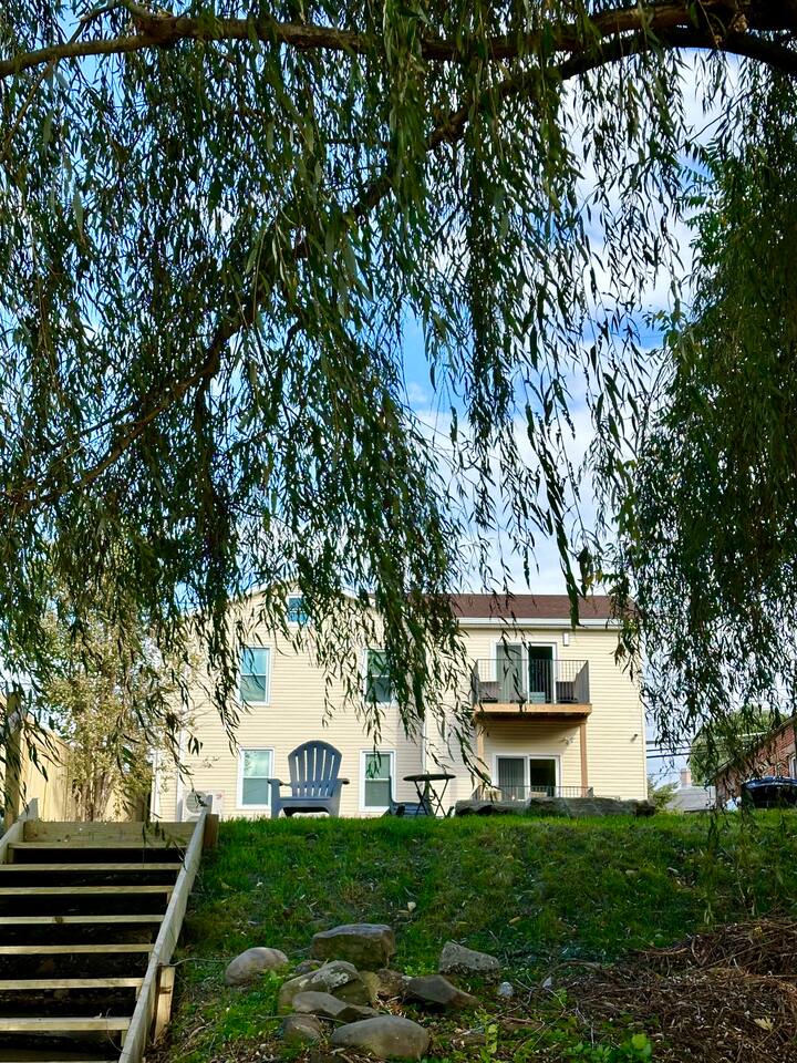 This is a two unit apartment building. One 3br apt upstairs and one 2br appt downstairs. They have two separate entrances and their own set of amenities. This rental is for the entire building both up and downstairs apartments for a total of 5 bedrooms. Please note that they are not inter-connected. People with children or mobility issues please note that this is a waterfront property and is bordered on one side by the Esopus Creek with a dock open to the water. People do swim in the Creek, but be aware it is a natural waterway and can be fast flowing and very deep in places. All swimming and entering of the water is at your own risk.